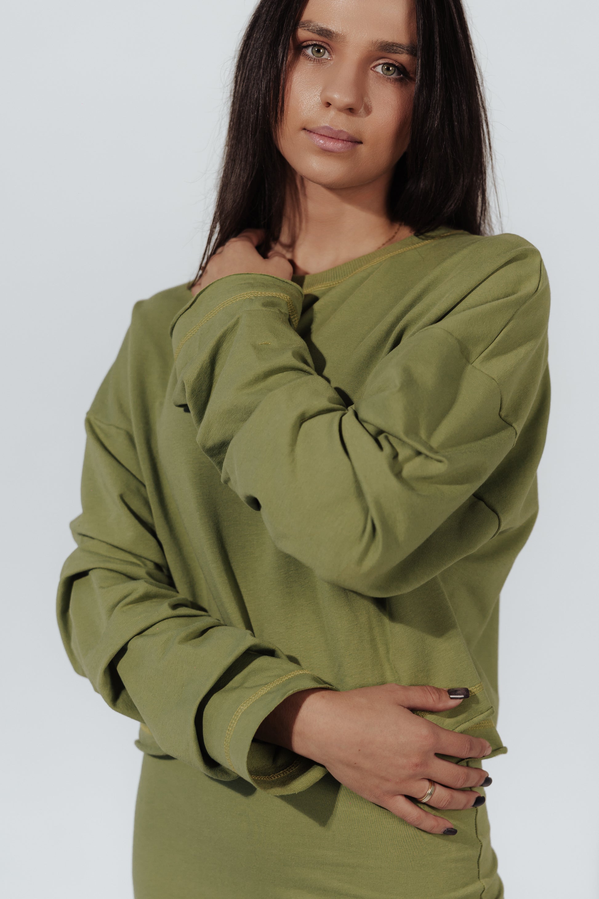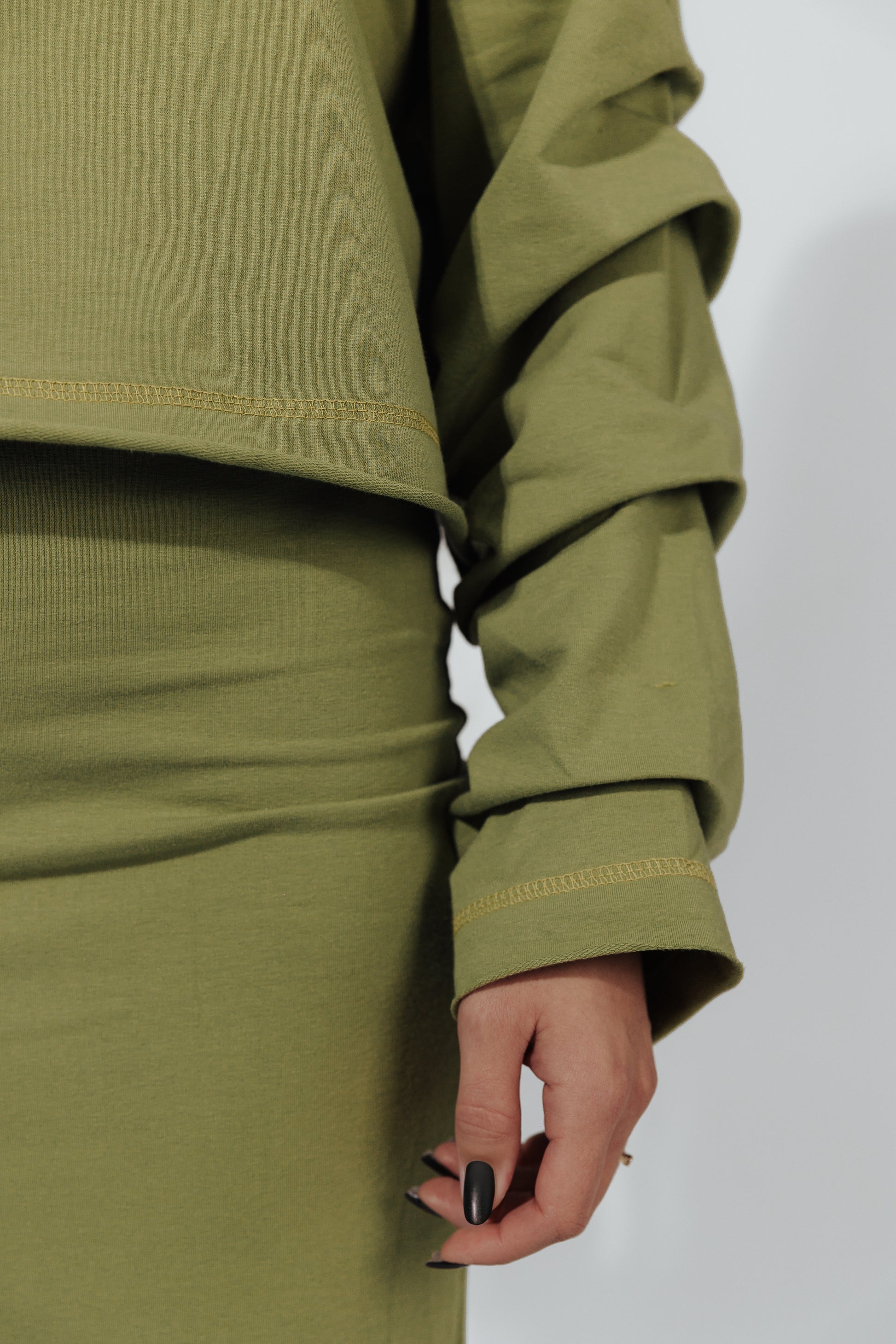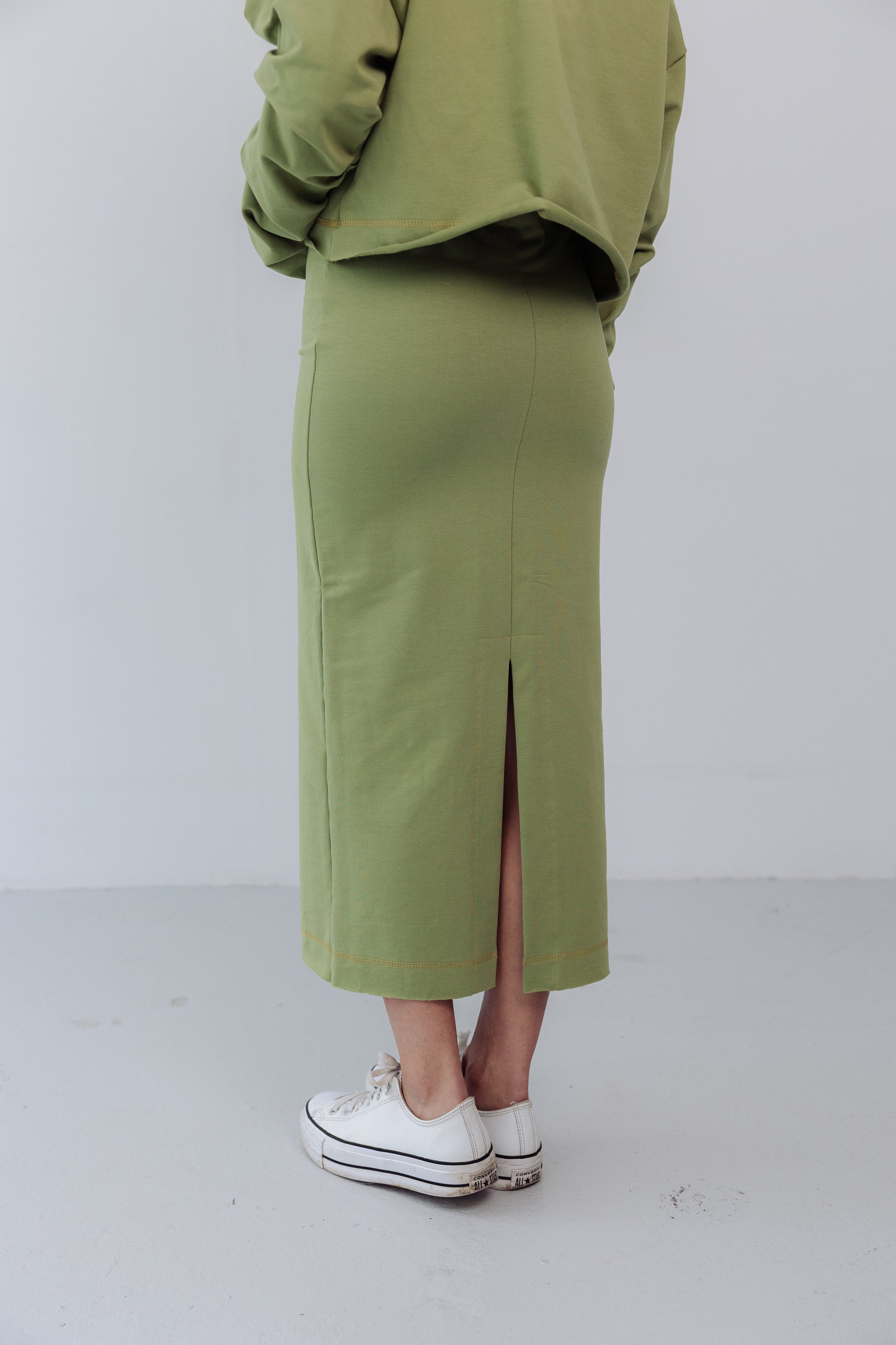 Komplet dresowy Mariette pistacja- swobodna elegancja z nutą świeżości. Dwuczęściowy zestaw to idealne połączenie wygody i stylu. Bluza o luźnym kroju, z subtelnymi marszczeniami na rękawach, dodaje lekkości i kobiecego wyrazu. Dopasowana spódnica typu tuba z rozcięciem z tyłu podkreśla sylwetkę, zapewniając jednocześnie komfort i swobodę ruchu. Całość tworzy spójny, nowoczesny look- idealny na co dzień, do pracy czy na spotkanie.